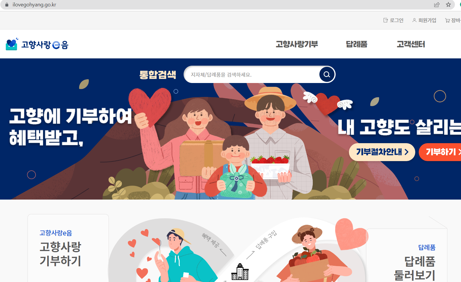 고향사랑e음 홈페이지 https://ilovegohyang.go.kr/ 회원가입 후 신청하시면 됩니다.